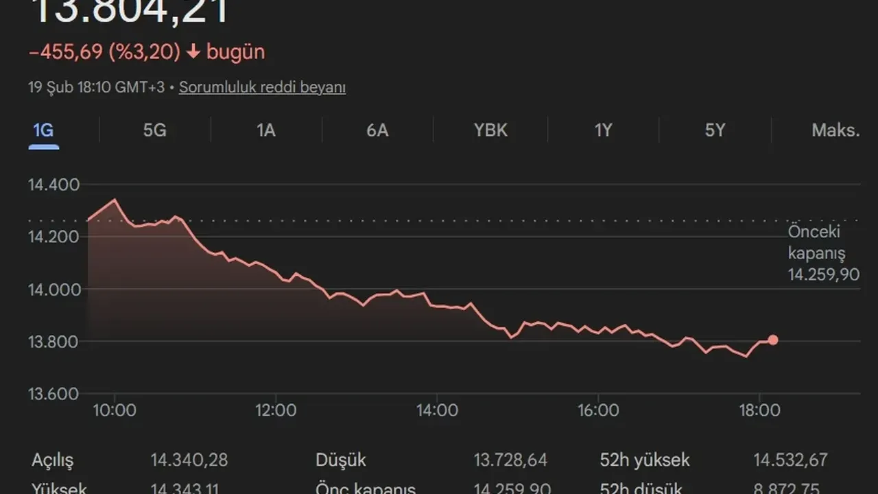 Borsa İstanbul’da BIST 100 endeksi, önceki kapanışa göre 730,39 puan kayıpla 12.987,42 puana indi. Yüzde 5,32’lik düşüş, son dönemdeki en sert günlük başlangıçlardan biri olarak kayıtlara geçti.