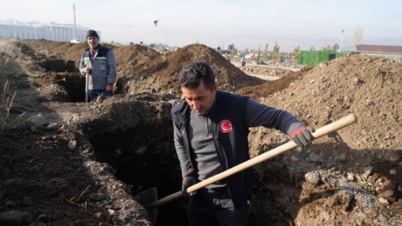İş makinelerince yapılan mezar kazılarında sona gelindi. Yapılan kazı çalışmalarının ardından belediye işçileri kazma ve küreklerle mezar yerlerini uygun hale getiriyor. Her yıl kasım-aralık aylarında yapılan mezar kazılması çalışmaları bu yıl da yeniden yapıldı.