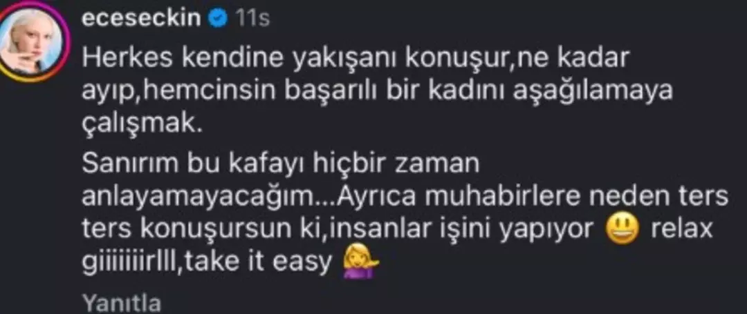 Ece Seçkin’den Tepki: “Relax Girl, Take It Easy”