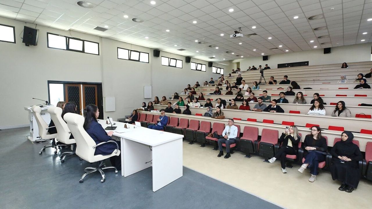 GAÜN Hukuk Fakültesi Amfisi’nde gerçekleştirilen panele; Gaziantep Bölge Adliye Mahkemesi 17. Hukuk Dairesi Hakimi Merve Türker, Gaziantep Barosu Avukatı Gaye Ağalın ve GAÜN Hukuk Fakültesi Dr. Öğretim Üyesi Duygu Dağlıoğlu konuşmacı olarak katıldı. Panelde konuşmacılar, kadın hukukçular olarak meslek hayatlarında edindikleri deneyimleri ve hukuk alanındaki yolculuklarını öğrencilerle paylaştı. Hakimlik, avukatlık ve akademisyenlik mesleklerinin farklı yönlerinin ele alındığı panelde, öğrencilere mesleki gelişim konusunda önemli tavsiyelerde bulunuldu.