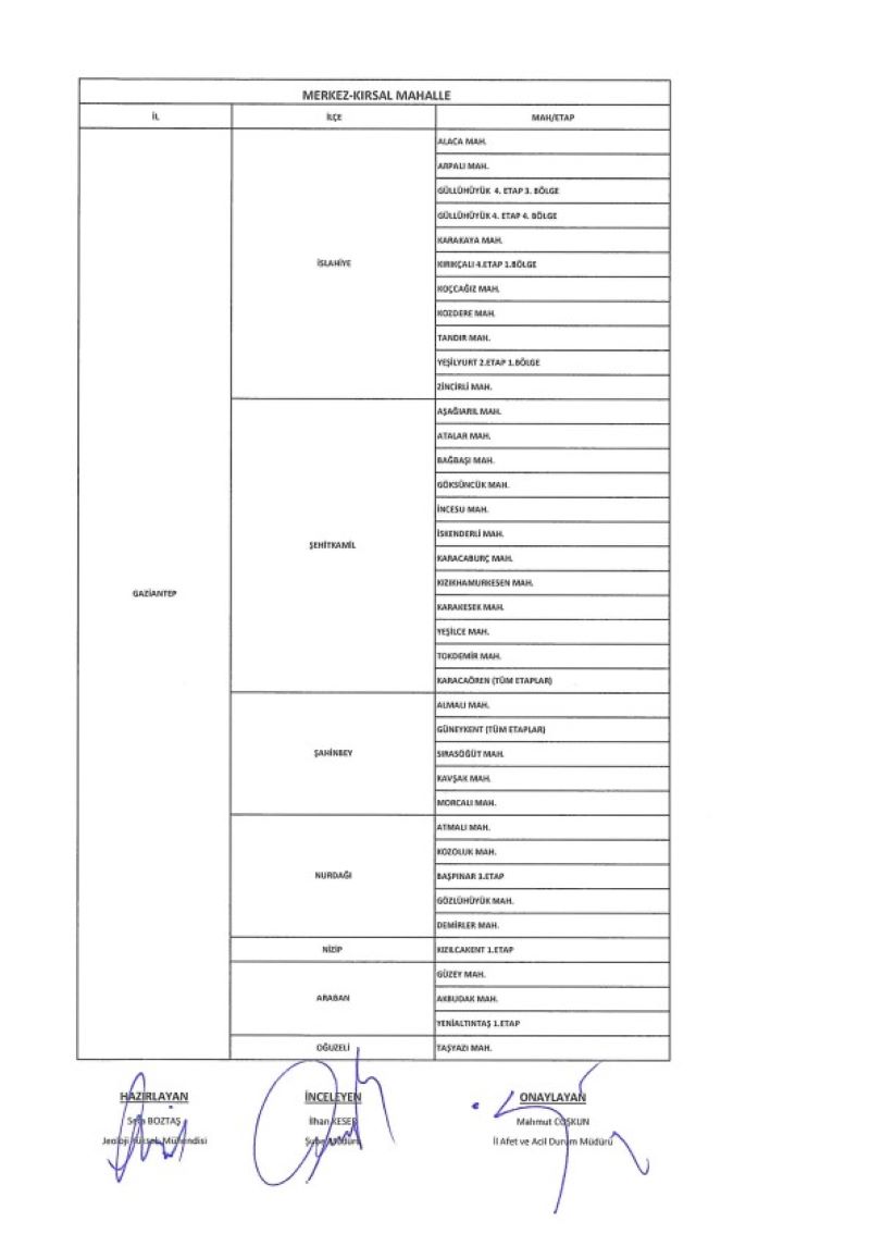 Gaziantep İl Afet ve Acil Durum Müdürlüğü tarafından paylaşılan teslime hazır konutların listesi şu şekilde;