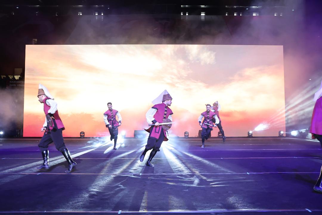 Gaziantep Valisi Kemal Çeber ise salonu dolduran vatandaşları selamlayarak, “Bu muhteşem salonda açılıştan sonraki en kapsamlı programı bayraklarımız eşliğinde marşlarımızla, bize özgü kültürümüzle yapıyor olmaktan son derece mutluyum” dedi.