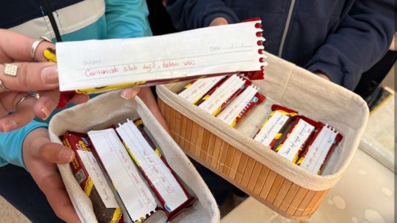 Gaziantep’te de eğitimde şiddet olaylarına karşın öğrencilerden anlamlı bir farkındalık etkinliği geldi. Kocatepe Ortaokulu 7’nci sınıf öğrencileri, çikolataların üzerine iliştirdikleri notlarla anlamlı mesajlar verdi. Öğrenciler, “Şiddetle değil, sevgiyle öğreniyoruz" ve “Çantamda silah değil, kalem var" notlarının yer aldığı çikolatalarla şiddete karşı mesaj verdiler.