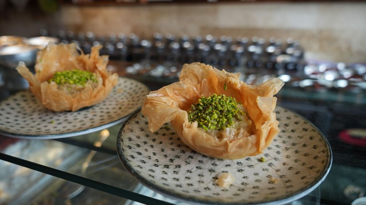 Gastronomi başkenti Gaziantep'te, Avrupa tescilli baklavanın değerlendirilmesiyle hazırlanan bu özel tatlı, hem ekonomik hem de lezzetli oluşuyla birlikte geri dönüşüm tatlısı olarak biliniyor. Geçmişte baklavanın kenarlarından ekmek arası dürüm ve börek yapılırken, günümüzde bu ürünler daha zengin sunumlarla yeniden yorumlanarak helva haline getirildi. Gaziantepli ustalar tarafından özenle hazırlanan helvada, baklava tepsisinde kenarda kalan kırıntılar, özel yöntemlerle işlenerek irmikle harmanlanıyor. Ardından süt ve şekerle buluşturulan bu karışım, baklava yufkasından hazırlanan yenilebilir tabaklara yerleştirilerek tezgahlarda yerini alıyor. İlk kez tadan müşterilerden tam not alan baklavalı helva, hem sunumu hem de lezzetiyle öne çıkarken, 250 TL'den satışa sunuluyor.