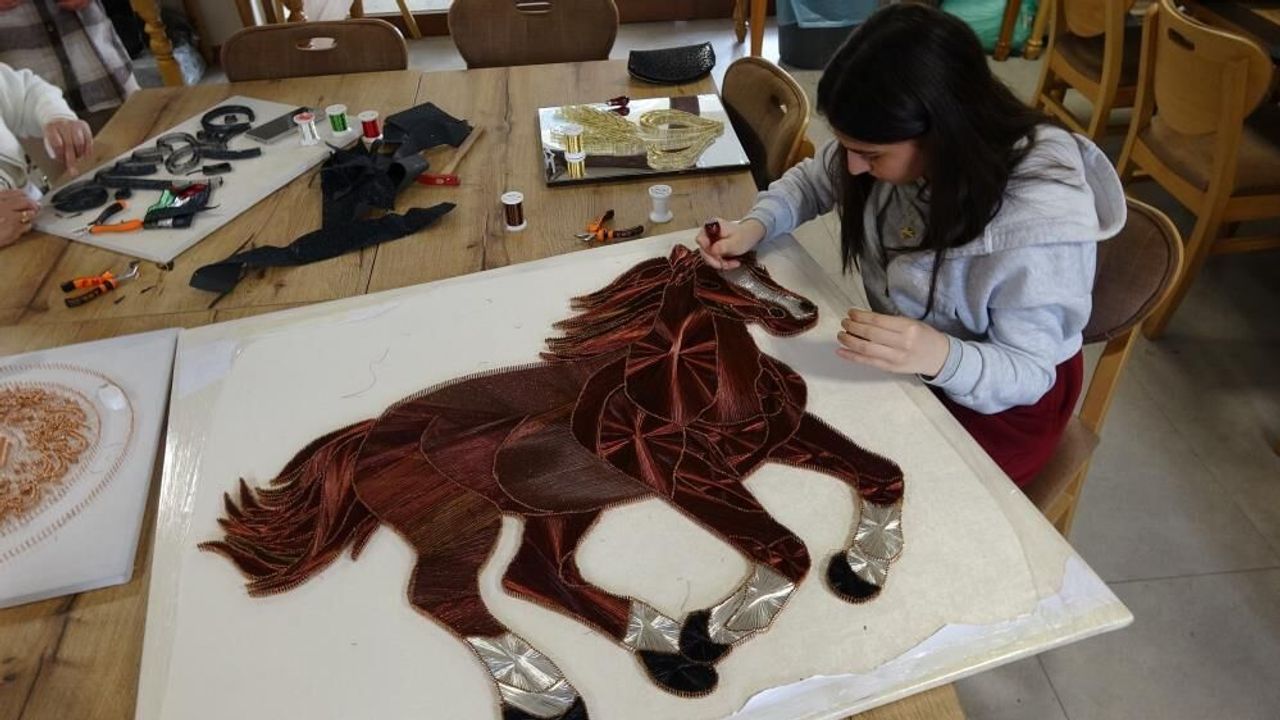 Çivi ve telin kullanıldığı filografi tekniğiyle birbirinden değerli sanatsal eserler ortaya çıkarılan kursta kimi kadınlar hayatında ilk defa bir meslek edinmenin ve maddi kazanç sağlayacak olmanın gururunu yaşıyor.