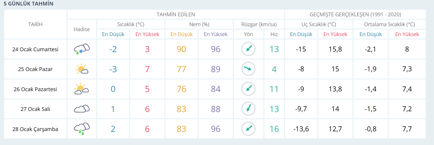 Gaziantep’in 5 günlük hava tahmini ise şöyle: