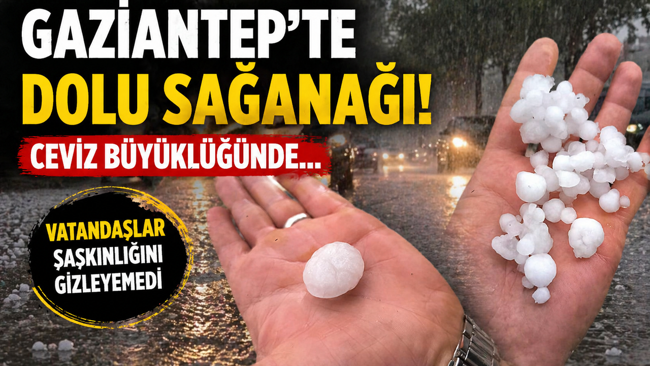 Gaziantep’te bir anda bastıran dolu yağışı ile birlikte, sokaklardaki vatandaşlar buldukları yere sığındı. Yağan dolunun boyutunun ceviz büyüklüğüne ulaştığını gören vatandaşlar ise şaşkınlığını gizleyemedi.