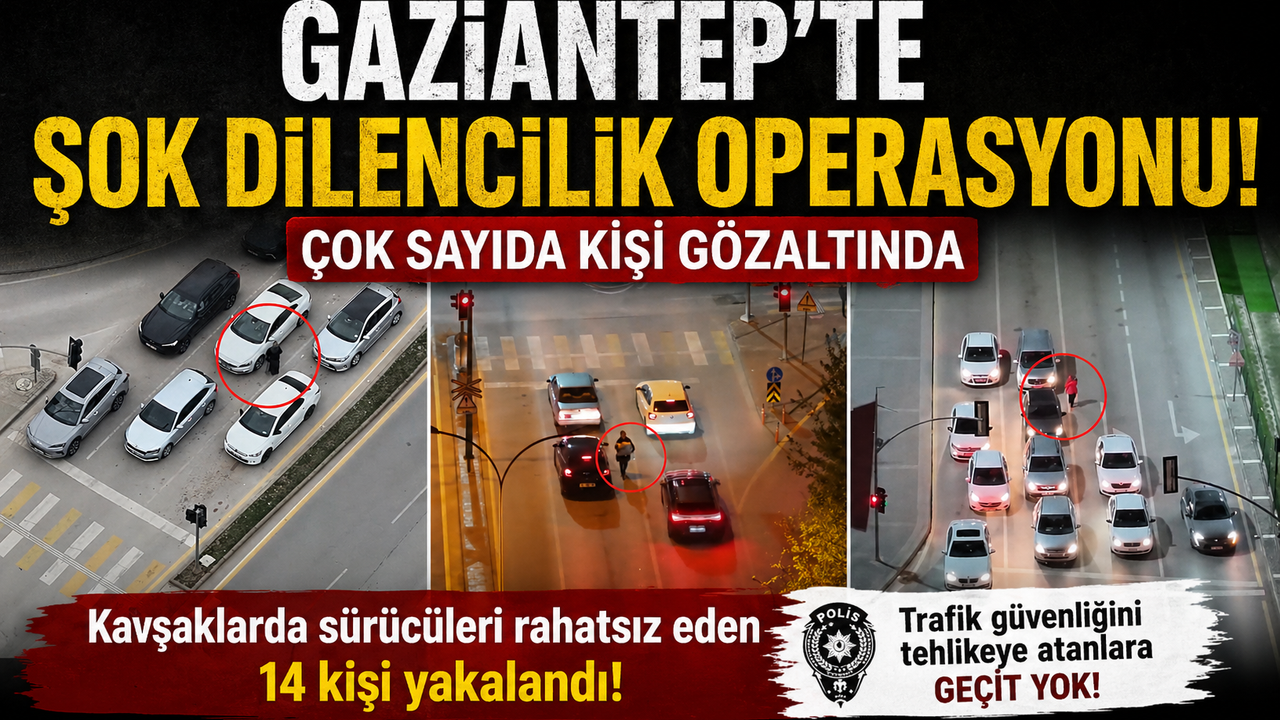 Gaziantep Emniyet Müdürlüğü ekipleri, kavşaklarda dilencilik ve satıcılık yaparak sürücüleri rahatsız eden, trafikte tehlike oluşturan şahıslara yönelik operasyon yaptı. İnsansız Hava Aracı (İHA) Büro, Çocuk Şube, bölge ekipleri ve dron destekli hava devriyesi çalışmaları sonucunda, kavşaklarda dilencilik ve satıcılık yaparak tehlike oluşturan 14 şahıs yakalandı.