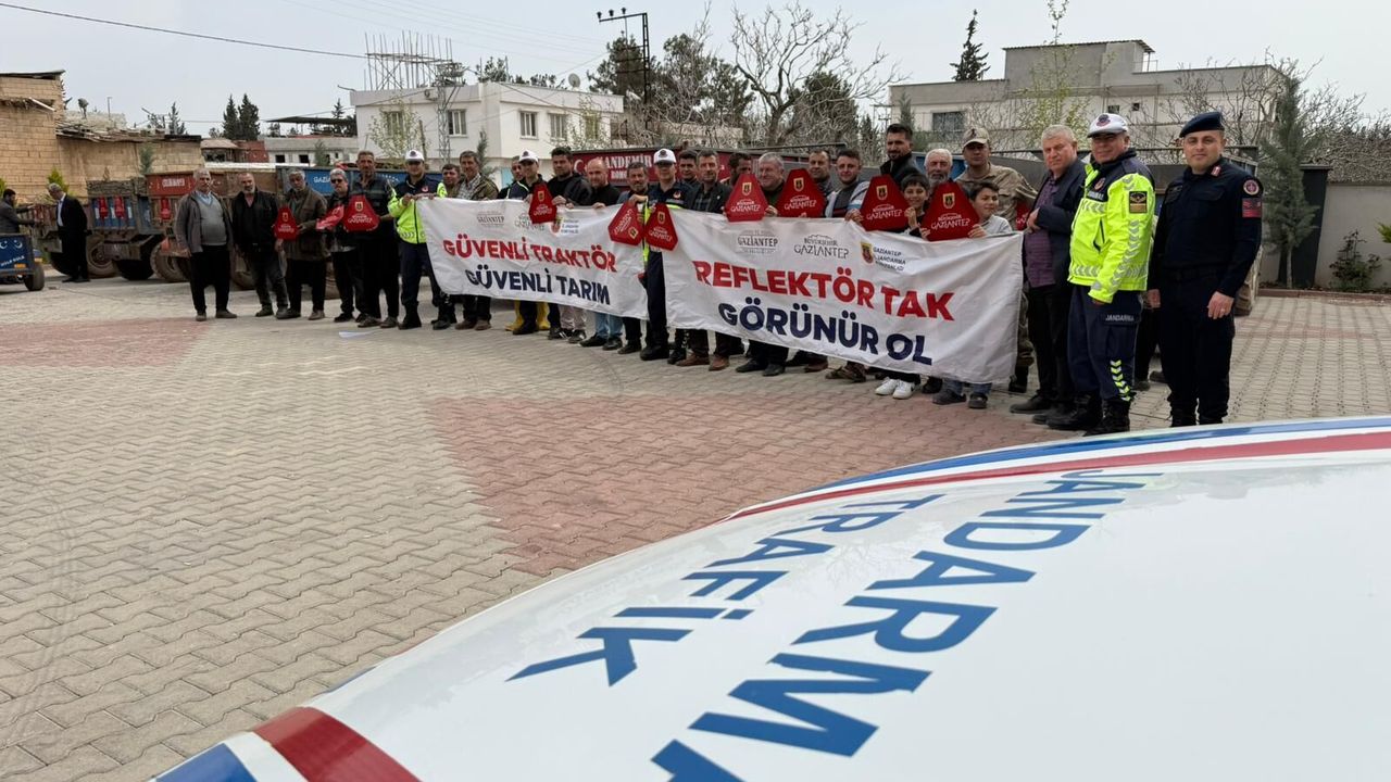 “Gaziantep İl Jandarma Komutanlığı Trafik Jandarması tarafından, traktörlerin karayollarında seyri sırasında görünürlüğü artırmak ve güvenli trafik akışını sağlamak amacıyla, Gaziantep Valiliği, Gaziantep Büyükşehir Belediyesi ve Gaziantep İl Jandarma Komutanlığı iş birliğinde yürütülen "Reflektör Tak, Görünür Ol" proje kapsamında Oğuzeli ilçesinde, Oğuzeli Kaymakamı Sayın Mikail ERSÖZ’ ün de katılımıyla (300) traktör sürücüsüne "sarı ikaz lambası kullanma, traktör römorklarında bulunması zorunlu olan reflektör ve rops demiri kullanımının trafik kazalarındaki önemi" hakkında trafik bilgilendirme semineri verilmiştir.