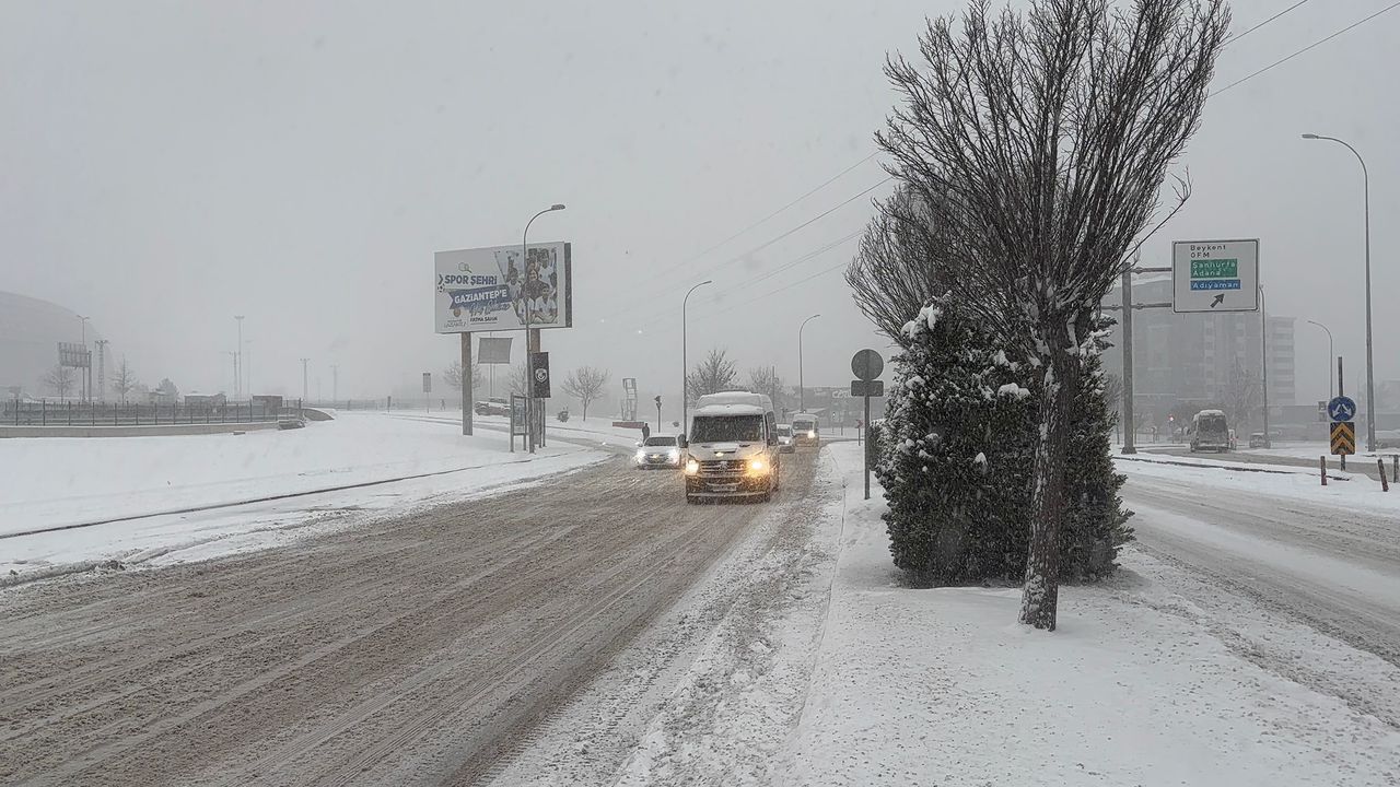Güne beyaz örtüyle uyanan Gaziantepliler, karla kaplı yollarda güçlükle ilerledi. Öte yandan yoğun yağış nedeniyle Gaziantep Havalimanı'ndaki uçuşlar da öğle saatlerine kadar iptal edildi.