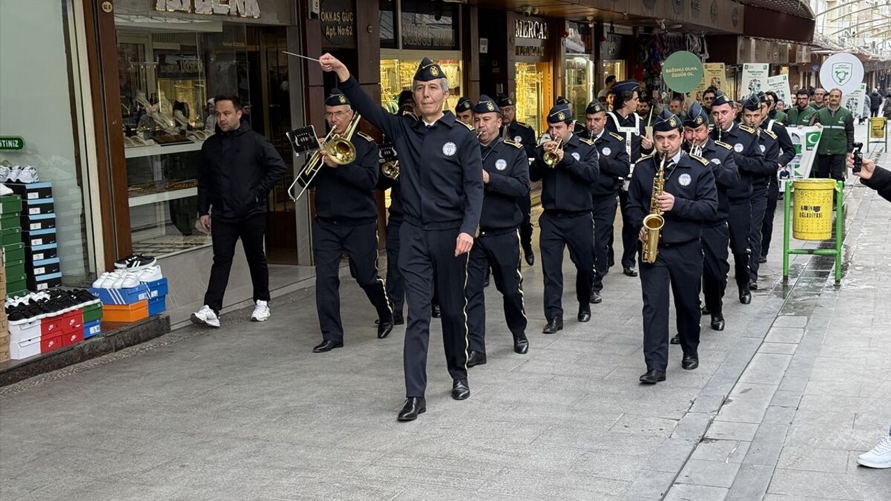 Gaziler Caddesi Almaca Pazarı önünde toplanan grup, Balıklı Meydanı'na yürüdü.