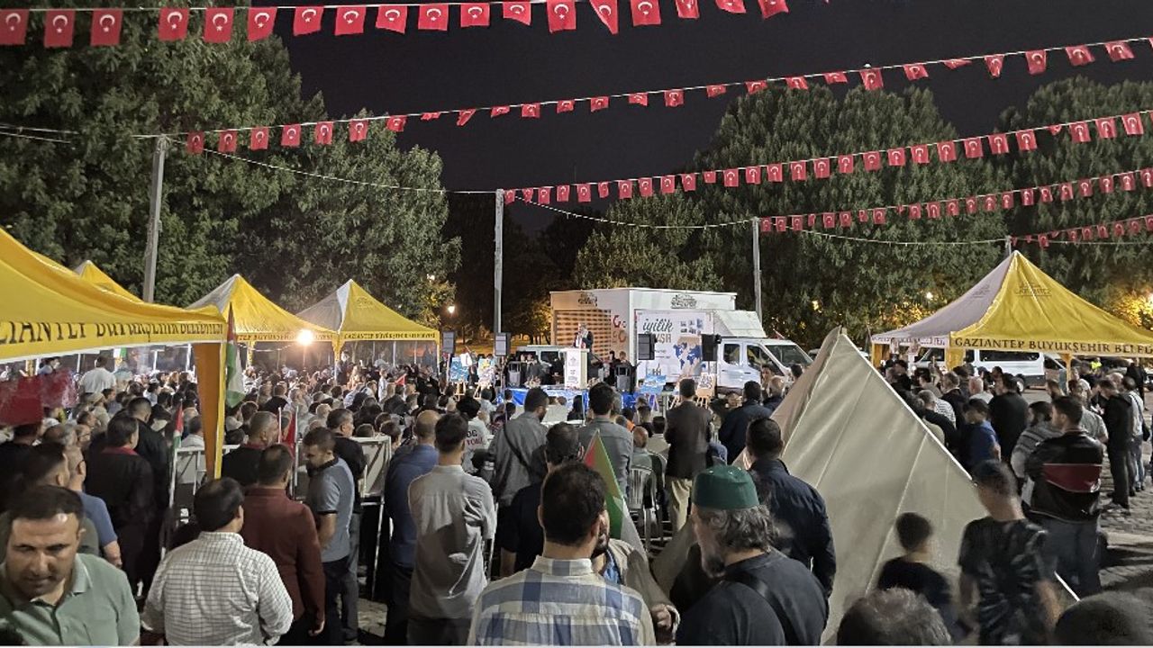 Gaziantep Kudüs Platformu tarafından başlatılan Küresel Sumud Filosu Nöbeti kapsamında İsrail’in filoya yönelik saldırıları, Gazze’de süregelen saldırılar ve aktivistlerin alıkonulması protesto edildi. Binlerce Gaziantepli dün akşam saatlerinde 15 Temmuz Demokrasi Meydanına akın etti, İsrail’i protesto etti.