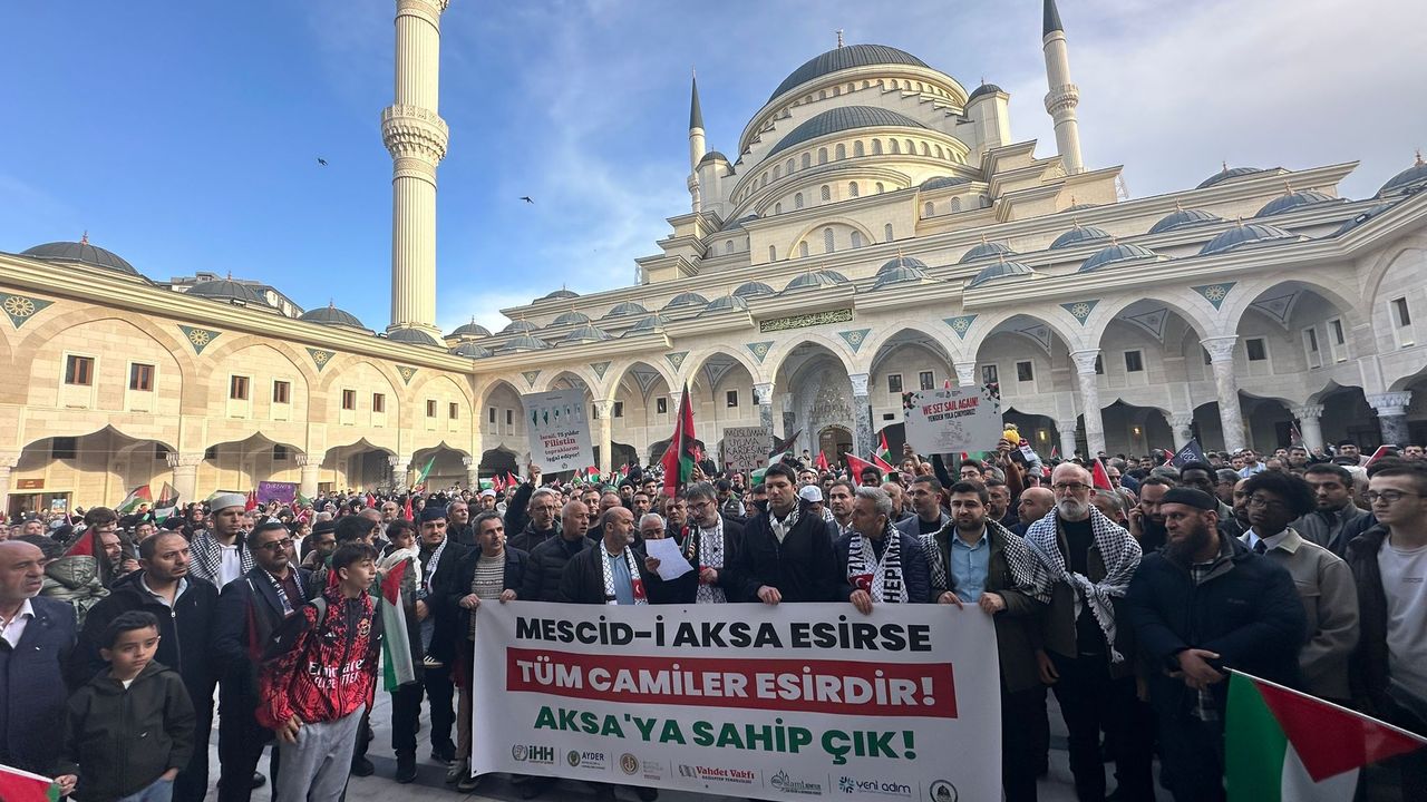 Siyonist rejim İsrail’in uygulamalarına tepki gösteren STK’lar tarafından, “Bir tarafta İslam’ın ilk kıblesi olan Mescid-i Aksa, diğer tarafta ise en temel hakları yok sayan uygulamalar vardır. Mescid-i Aksa bugün kapalıdır. Haftalardır insanlar ibadet edememekte, Cuma namazları kılınamamakta, bayram sabahı secdeye varılamamaktadır. Bu durum sadece bir güvenlik tedbiri değil; bir halkın inancına, kimliğine ve varlığına yönelik açık bir baskıdır. İbadet özgürlüğü engelleniyorsa orada özgürlükten söz edilemez. Kutsal mekânlar kapatılıyorsa orada hukuktan söz edilemez. Biz buradan açıkça ifade ediyoruz: Mescid-i Aksa yalnız değildir. Aksa susmaz, bu zulme karşı vicdan sahibi insanlar da susmayacaktır.” İfadeleri kullanıldı.