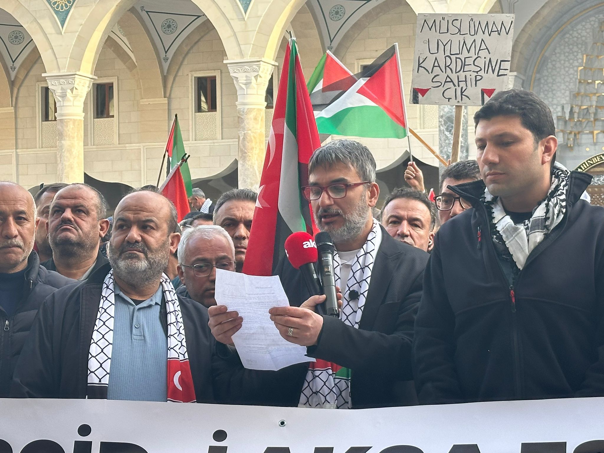 Eski Şehitkamil Belediyesi Binası önünde toplanıp namaz kıldıktan sonra Millet Camii’ne gelen grup burada basın açıklaması düzenledi. Programa katılan tüm Sivil Toplum Örgütleri adına ortak basın açıklamasını okuyan AYDER Başkanı Ahmet Koç “Bugün burada susmak için değil, haykırmak için toplandık. Çünkü bugün Filistin’de yaşananlar sıradan bir siyasi gerilim değil; açık bir zulüm, açık bir hak ihlali ve insanlığın gözleri önünde işlenen büyük bir adaletsizliktir.” dedi.