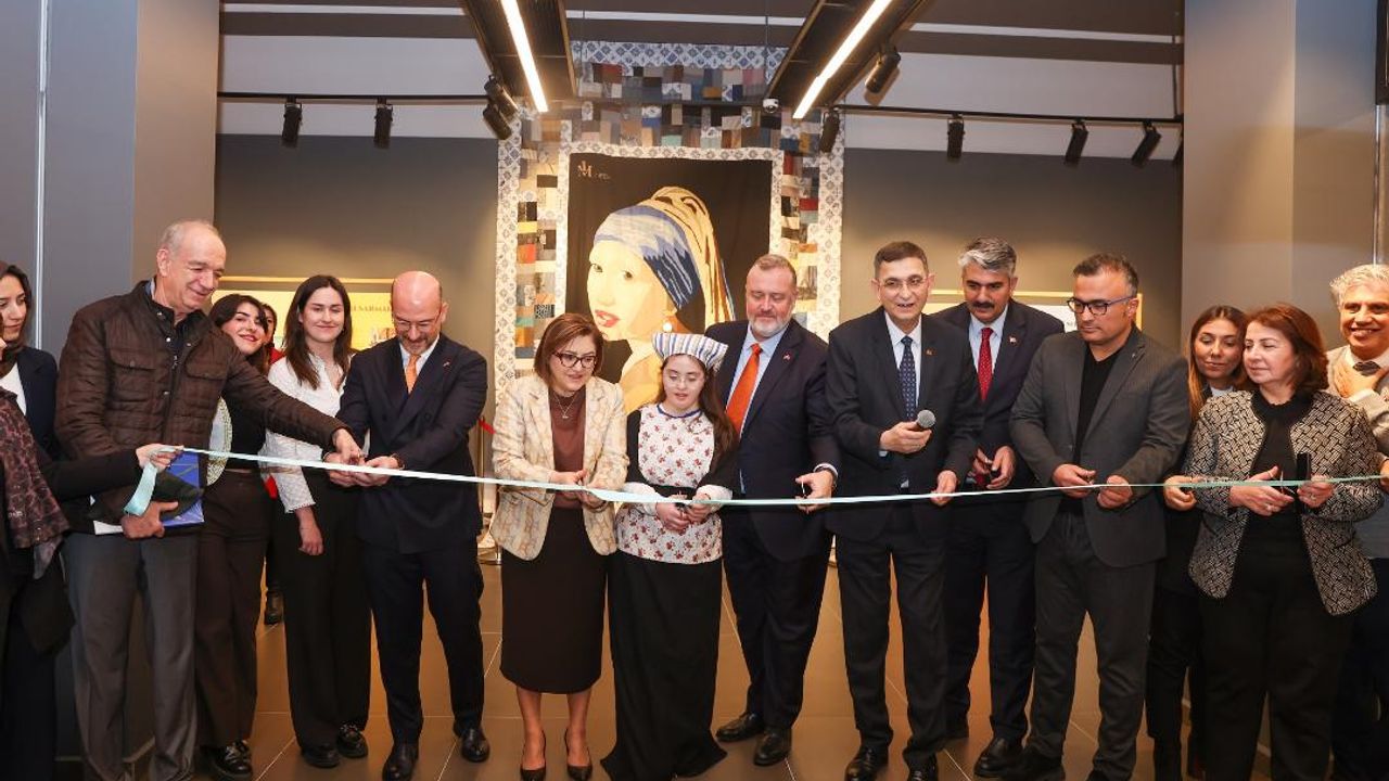 Serginin merkezinde, Johannes Vermeer’in ünlü eseri İnci Küpeli Kız’ı betimleyen bir duvar halısı bulunuyor. “Umut Halısı Projesi” kapsamında hazırlanan eser, 2023 yılında bölgeyi etkileyen depremlerin ardından Kahramanmaraş’ta yüzden fazla depremzede kadın tarafından elle dikildi.