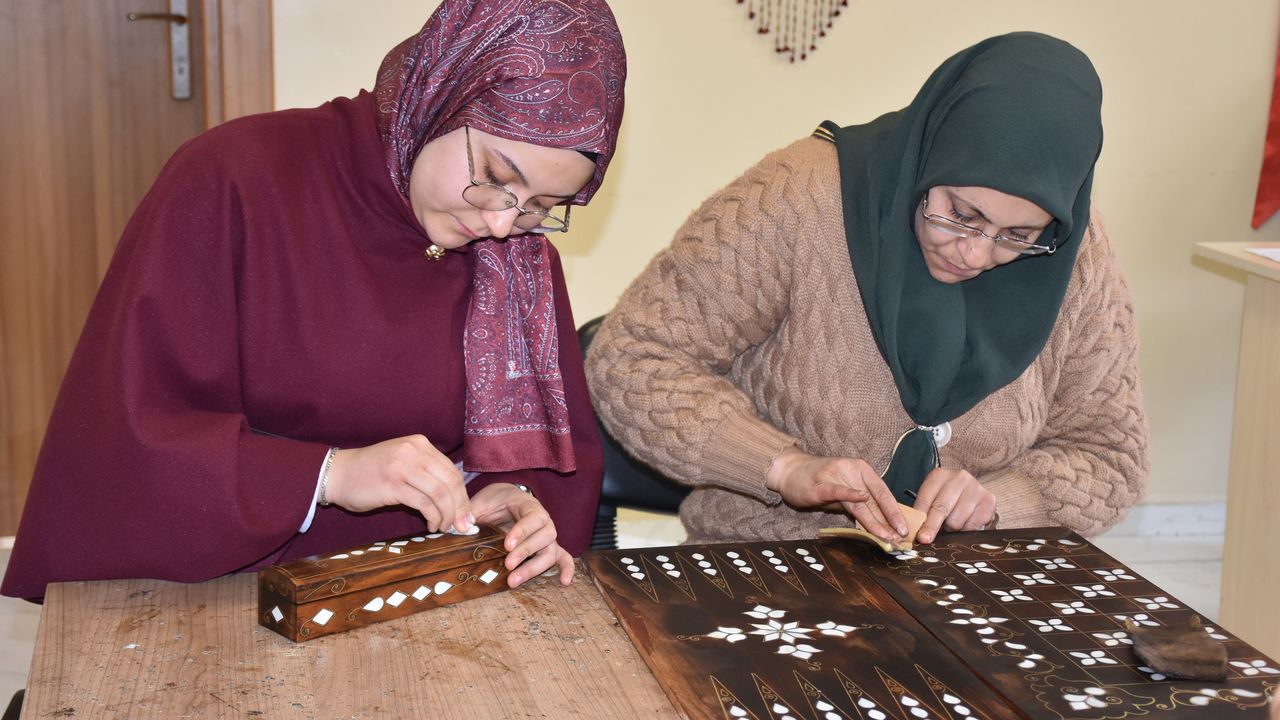 Sedefkarlık olarak nitelendirilen sedef kakma sanatı kapsamında kadın kursiyerler, kılıç, kama, sandık, ayna ve rahle gibi birçok ürüne sedef işliyor. Genelde erkeklerin yaptığı sedef kakma sanatı kursuna katılan kadınların ürettiği ürünler, göz kamaştırıyor. Kadınların ürettiği eşyalar, çeşitli hediyelik eşya galerilerinde satışa sunuluyor. Usta öğreticiler tarafından verilen eğitimlerde midye ve istiridye gibi deniz hayvanlarının kabuğunda bulunan sert ve beyaz maddeyi işçilikle ortaya çıkaran kadınlar, daha sonra ceviz ağacından yaptıkları ürünlere işledikleri malzemeyle sedef kakma sanatını ortaya koyuyor.